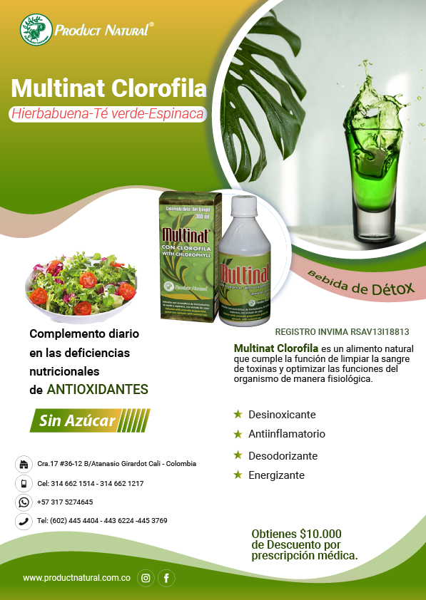 Multinat Clorofila es un alimento proveniente de ingredientes herbales